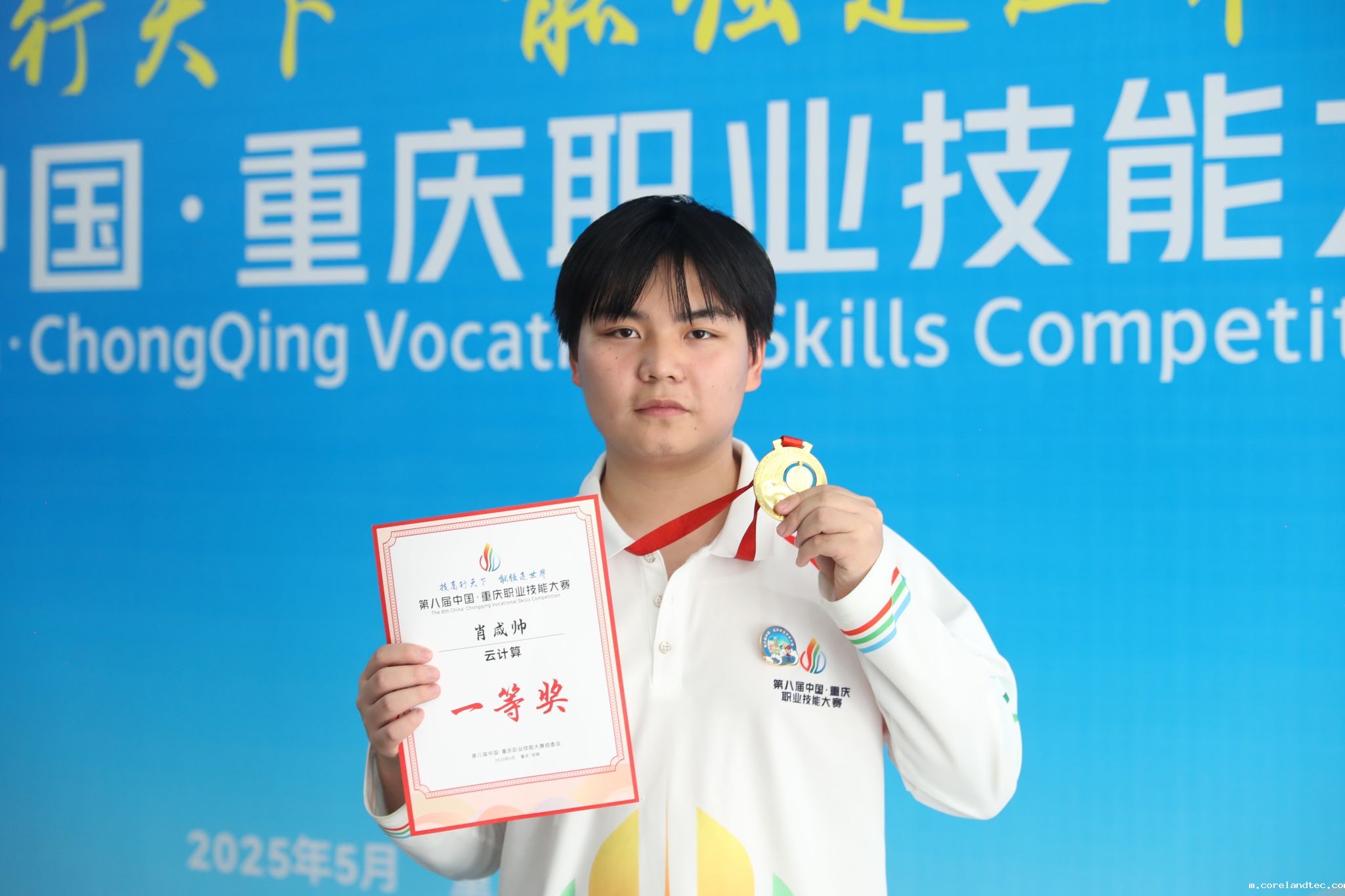 【荣誉墙】我校人工智能与大数据学院云计算技术应用专业学生肖咸帅勇夺第八届中国·重庆职业技能大赛云计算赛项金牌